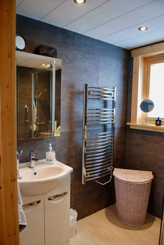 - Stylish shower room with toilet, sink & spacious walk-in shower