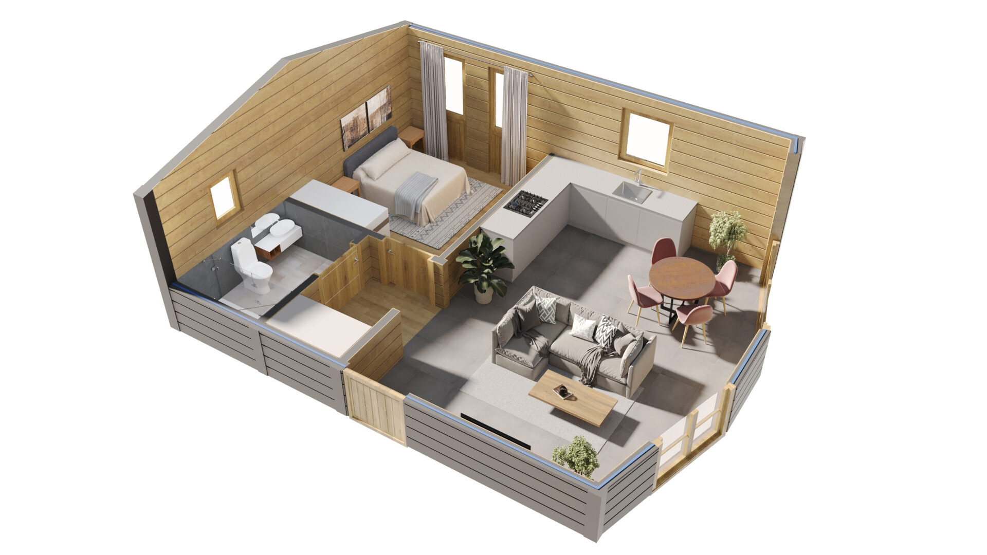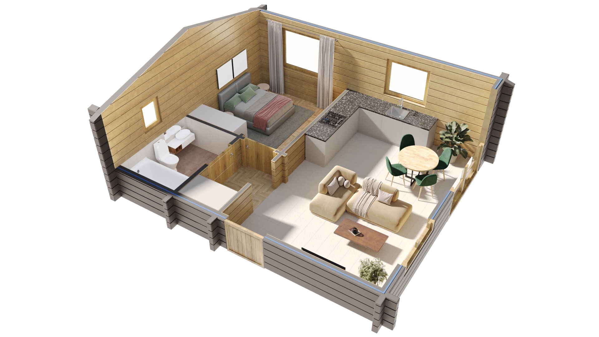All our granny annexes are made from natural, sustainable wood combined with modern cavity insulation, making them warm in winter, cool in summer and reducing running costs to a minimum.